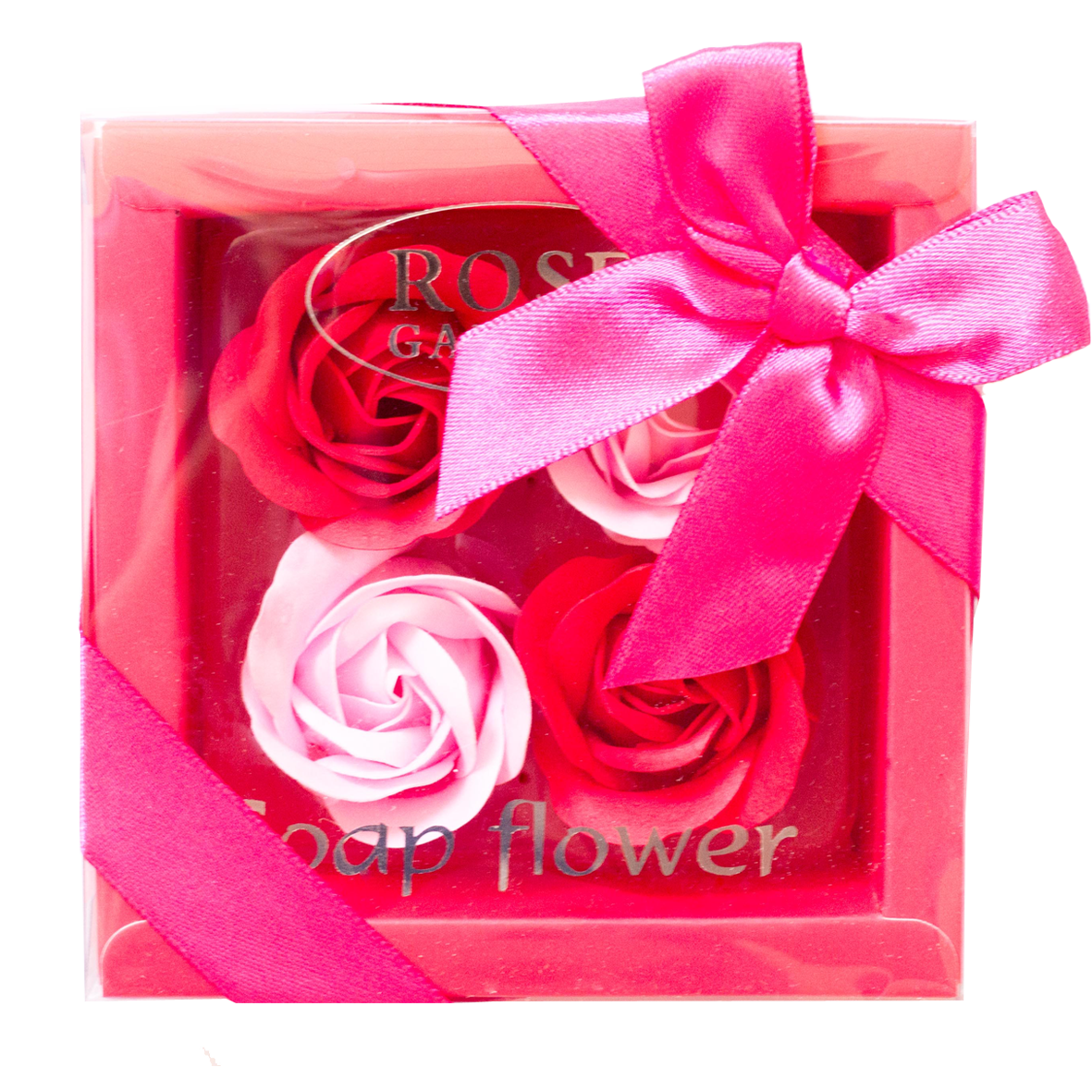 - Koreanisches Seifenrosen (4 Blüten) in hübscher Geschenkbox mit Schleife